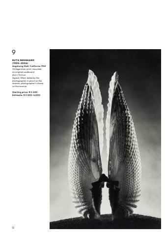 139RUTH BERNHARD( 1 9 0 5 %u2013 2 0 0 6 ) Angelwing Shell, California 1943Vintage silver print, mountedon original cardboard24,4 %u00d7 15,0 cmSigned, titled, dated by the photographer in pencil on the reverse, photographer%u2019s stampon the reverseStarting price: %u20ac 2.400Estimate: %u20ac 3.500%u20134.000