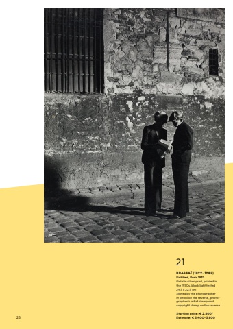 2521B R A S S A %u00cf ( 1 8 9 9 %u2013 1 9 8 4 ) Untitled, Paris 1931Gelatin silver print, printed in the 1950s, black light tested29,5 x 22,5 cmSigned by the photographer in pencil on the reverse, photographer%u2019s artist stamp and copyright stamp on the reverseStarting price: %u20ac 2.800*Estimate: %u20ac 3.400%u20133.800