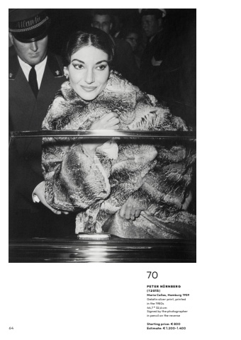 6470P E T E R N %u00dc R N B E R G ( %u20202 0 1 5 ) Maria Callas, Hamburg 1959Gelatin silver print, printed in the 1980s44,7 %u00d7 32,6 cmSigned by the photographer in pencil on the reverseStarting price: %u20ac 800Estimate: %u20ac 1.200%u20131.400